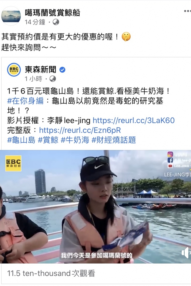 噶瑪蘭號賞鯨、登島趣 預約專線 0927-639785 陳先生