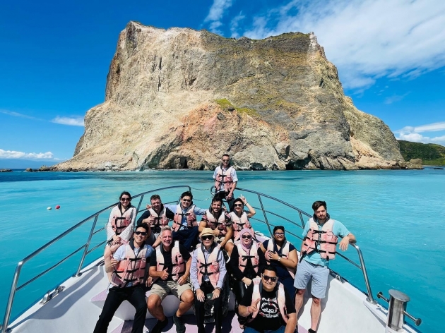 歡迎外交部國際記者團來訪,搭乘噶瑪蘭號,欣賞龜山島美景。